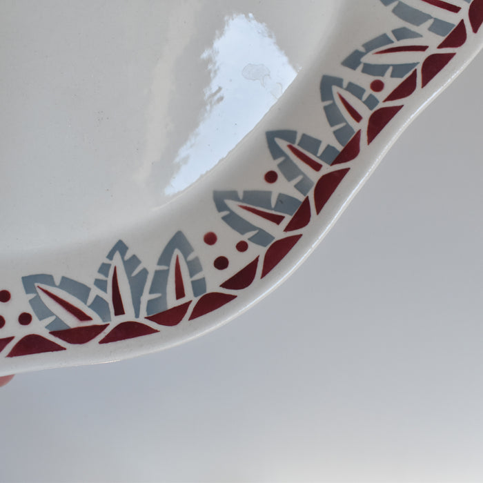 深みのある赤と、アッシュグレードの二色のスプレーステンシルで描かれた模様。