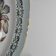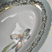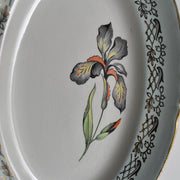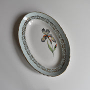 淡いマリンブルーに色鮮やかなアイリスの花が描かれたデザイン。