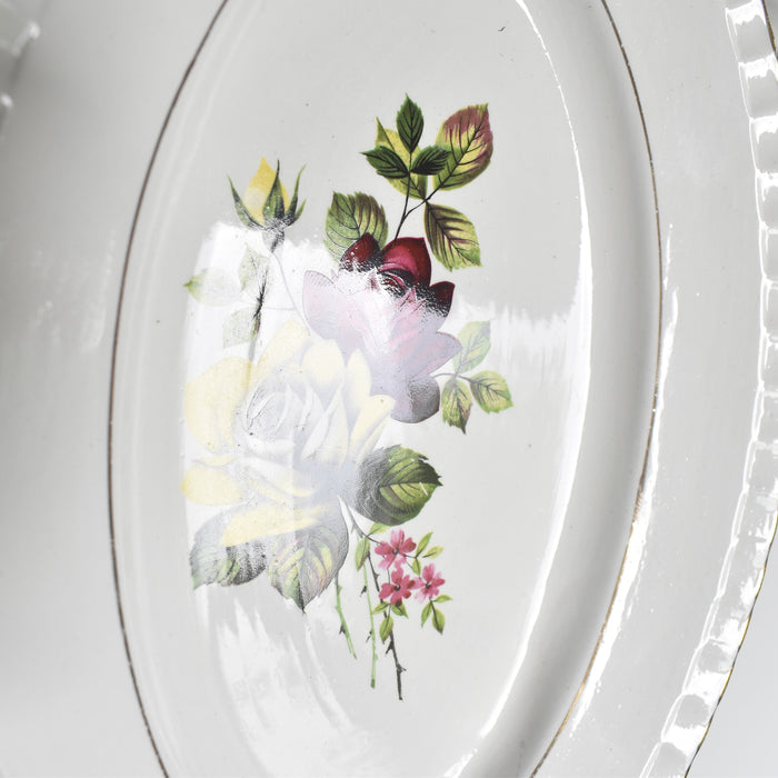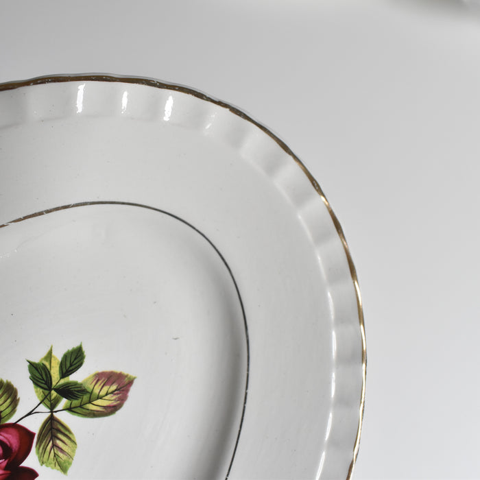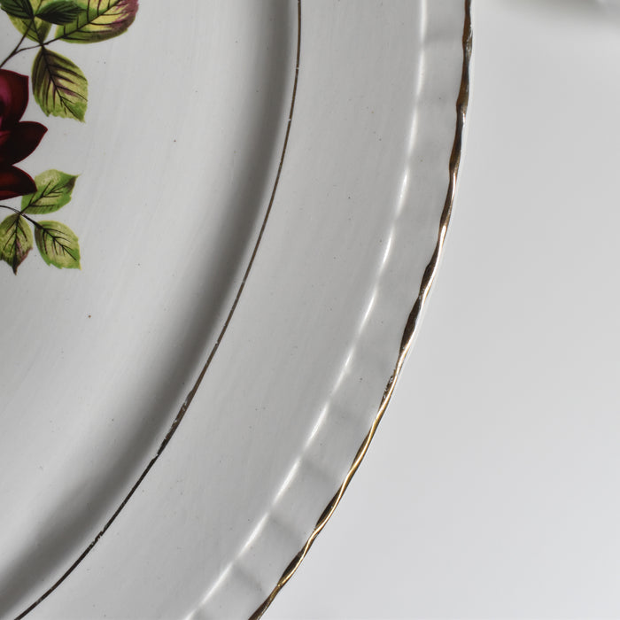 黄色と赤のバラのブーケが、縁のレリーフや金彩とマッチしています。