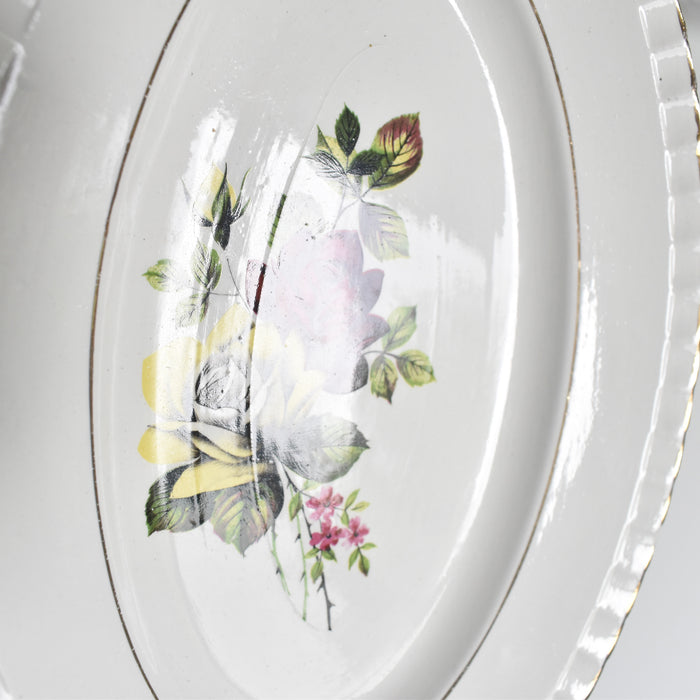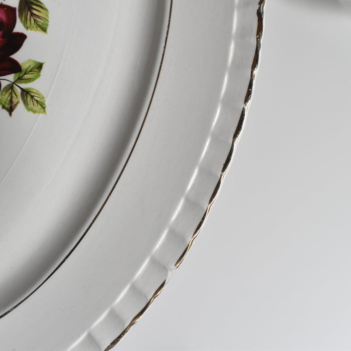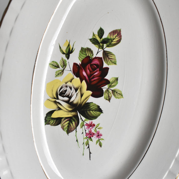 黄色と赤のバラのブーケが、縁のレリーフや金彩とマッチしています。
