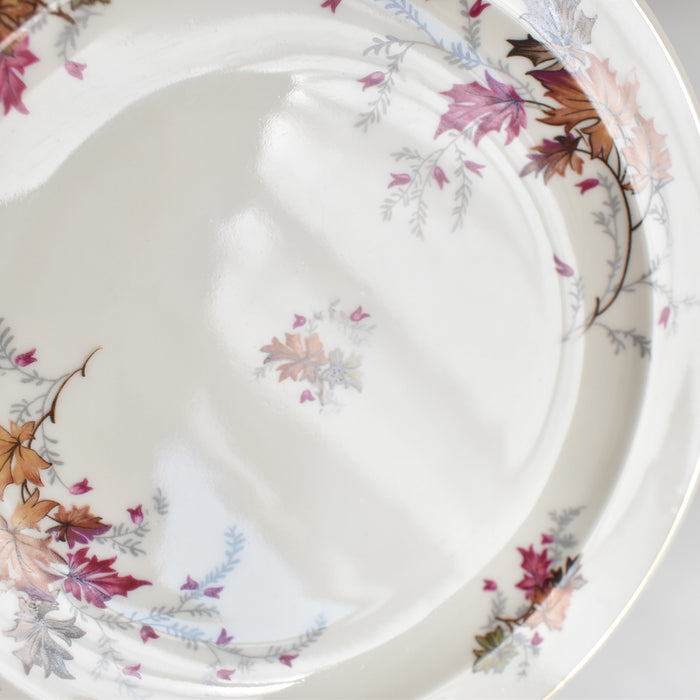 紅葉する葉の色合いが美しく、心奪われます。平面なプレートの中に、時間の流れや季節の動きを感じる素敵な一品です。