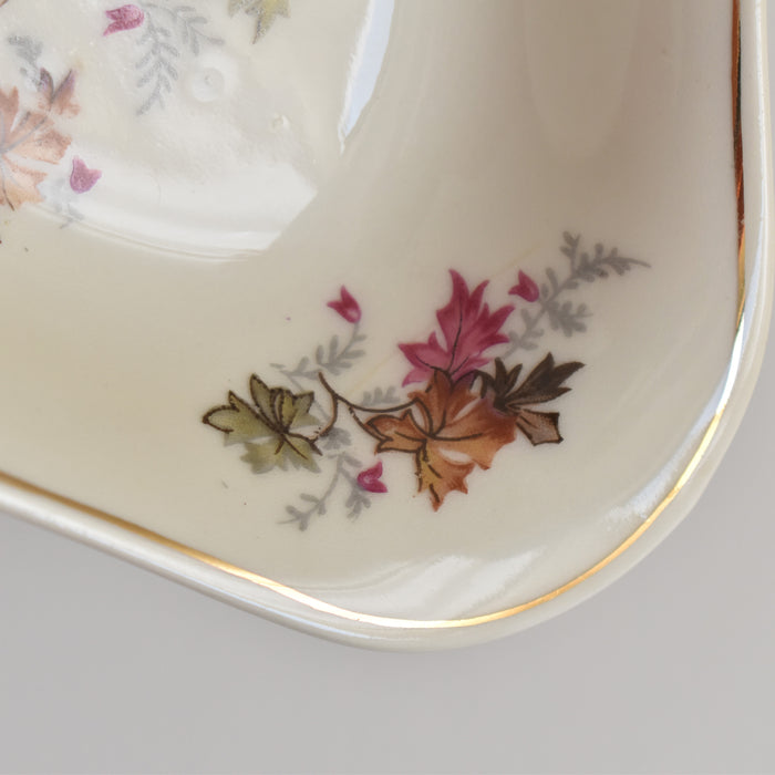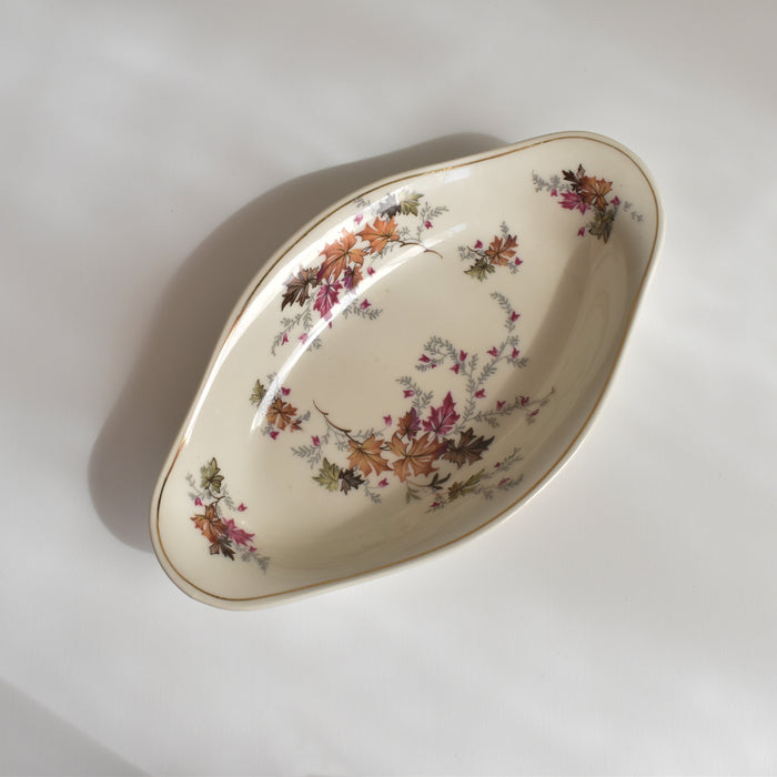 紅葉する葉の色合いが美しく、心奪われます。平面なプレートの中に、時間の流れや季節の動きを感じる素敵な一品です。