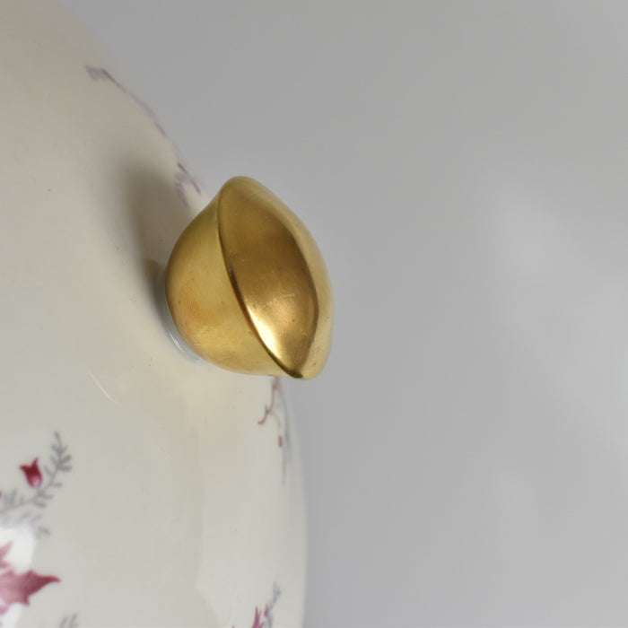 ピンクの小さな花や、金彩の縁取りや取手もアクセントになりエレガントな雰囲気を生み出しています。ホリデーシーズンにぴったりです。