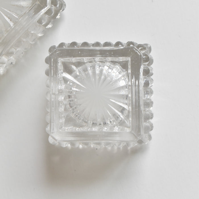 20世紀初頭から中期にかけて作られたとみられる、プレスガラス製のヴィンテージソルト&ペッパー入れです。