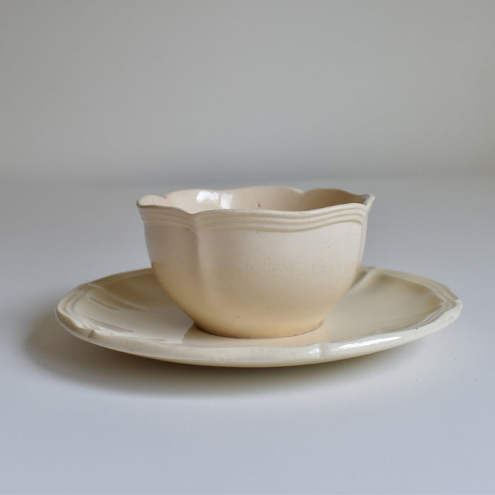 シンプルで美しい花リムと少しクリーム色がかった色合いが、優しく可憐な印象を生み出します。