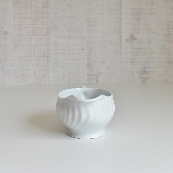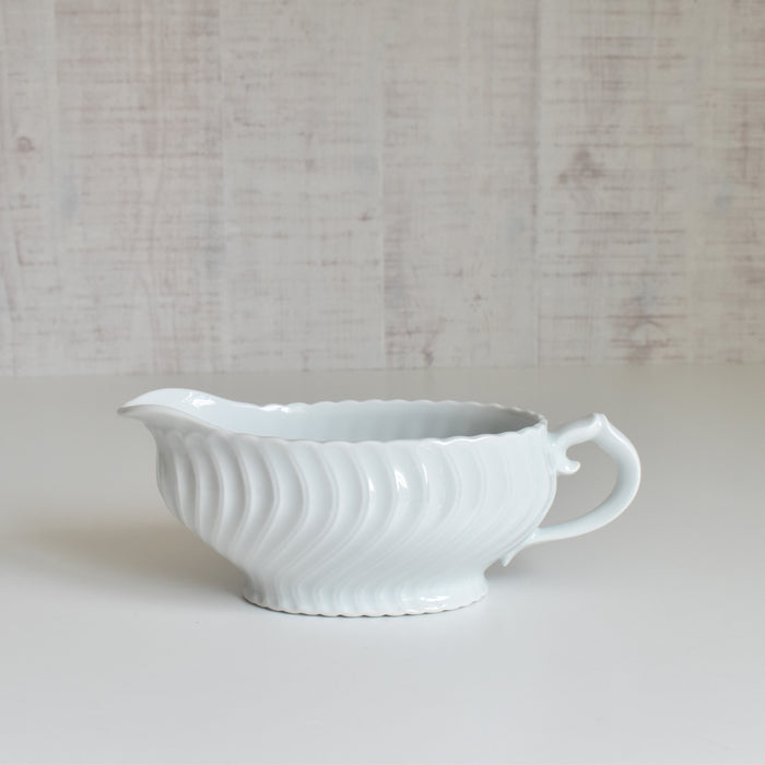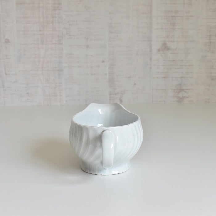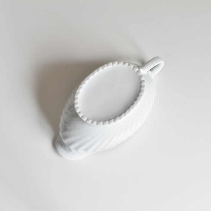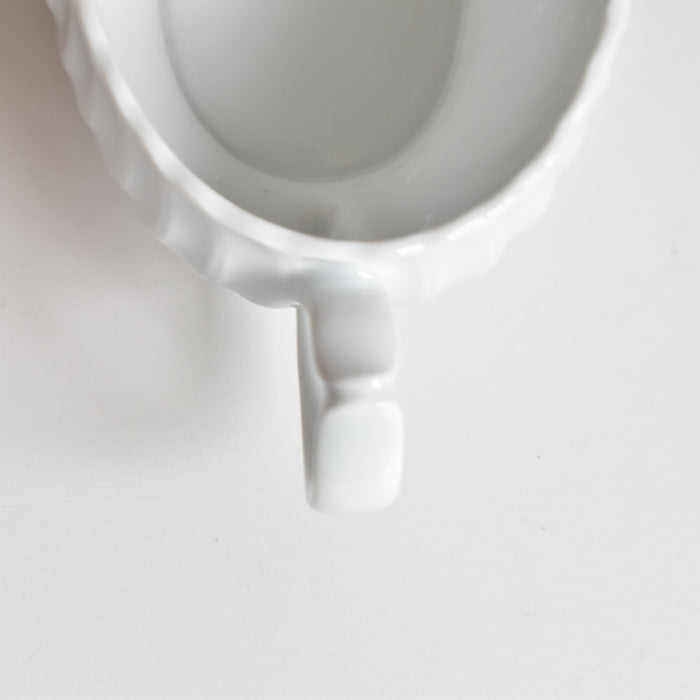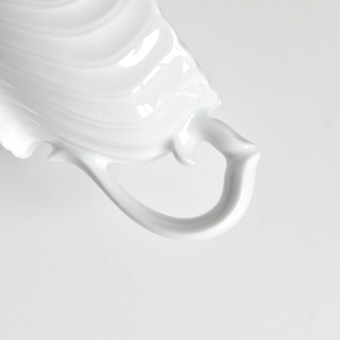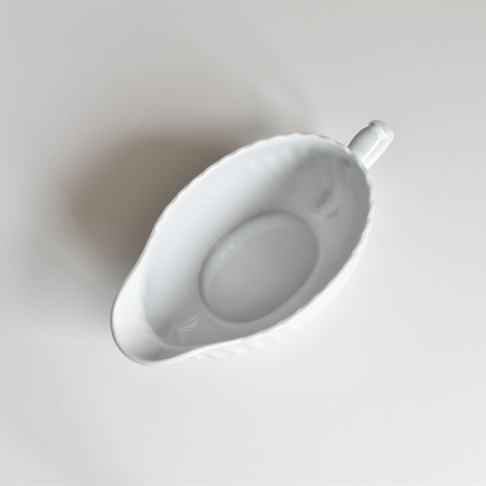 フランスのリモージュで作られたと思われる、白い磁器のソースボートです。