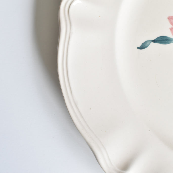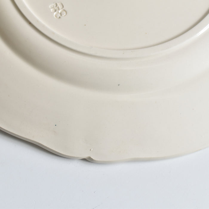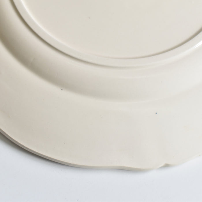 プレートの縁には、レリーフと繊細な花柄が施されて、上品な印象を与えます。