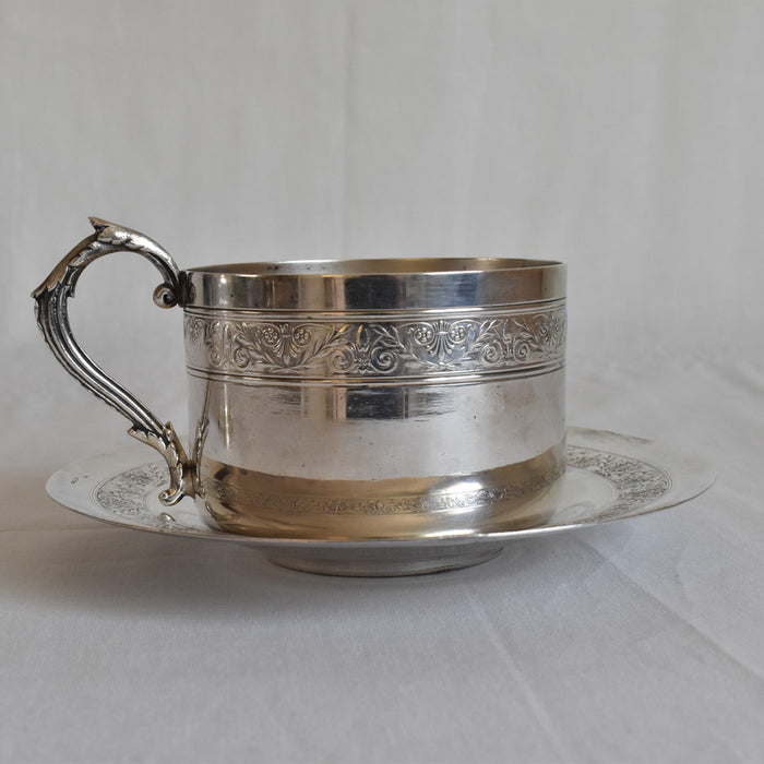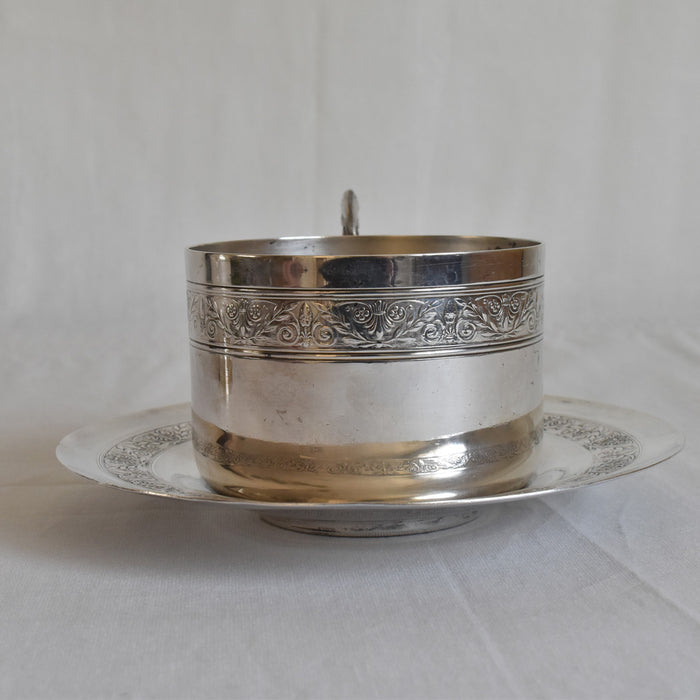 カップには一周ぐるっと装飾が施されていますが、ソーサーに載せるとソーサーの装飾がカップに映りラインが二重に見えるところが魅力的です。作り手の遊び心を感じる素敵なアンティークのカップ&ソーサーです。