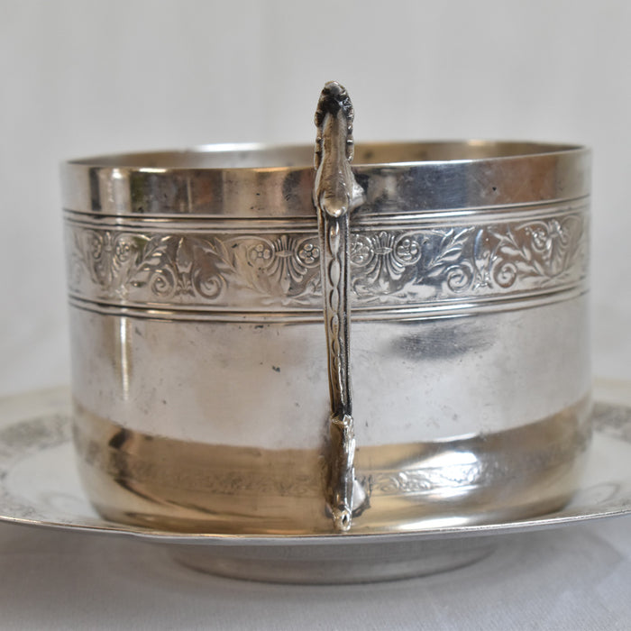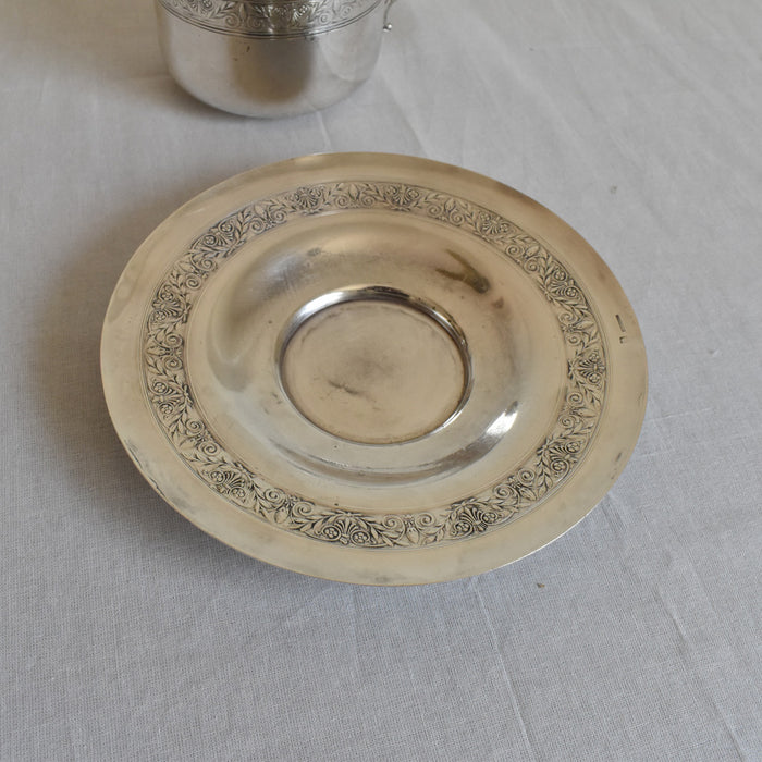 メーカーの刻印はありますが、ぼやけて確認できていません。METAL BLANCの刻印とシルバーメッキに使用されたシルバーのグラム数の刻印が確認できます。(8GR)