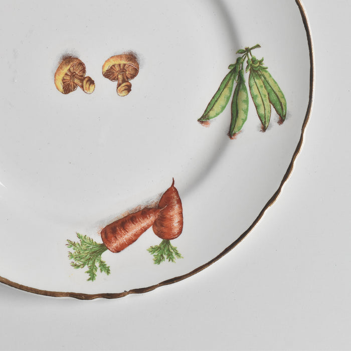 それぞれの野菜が生き生きと表現され、食卓に小さなガーデンのような賑わいを添えます。野菜の配置は一枚ずつ異なり、それぞれの個性をお楽しみいただけます。