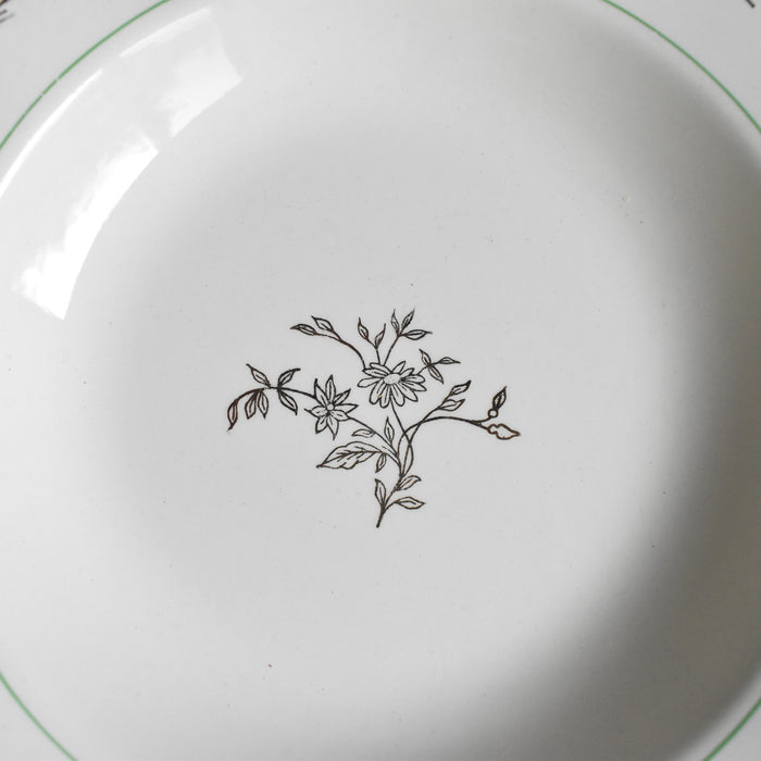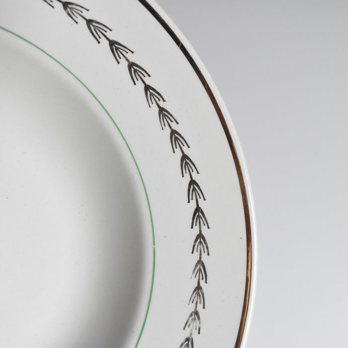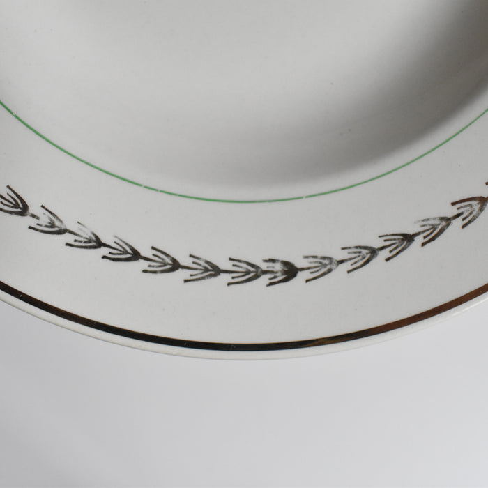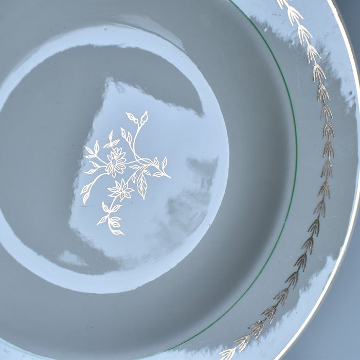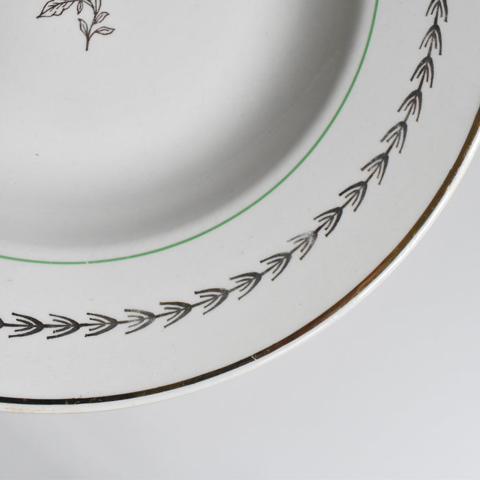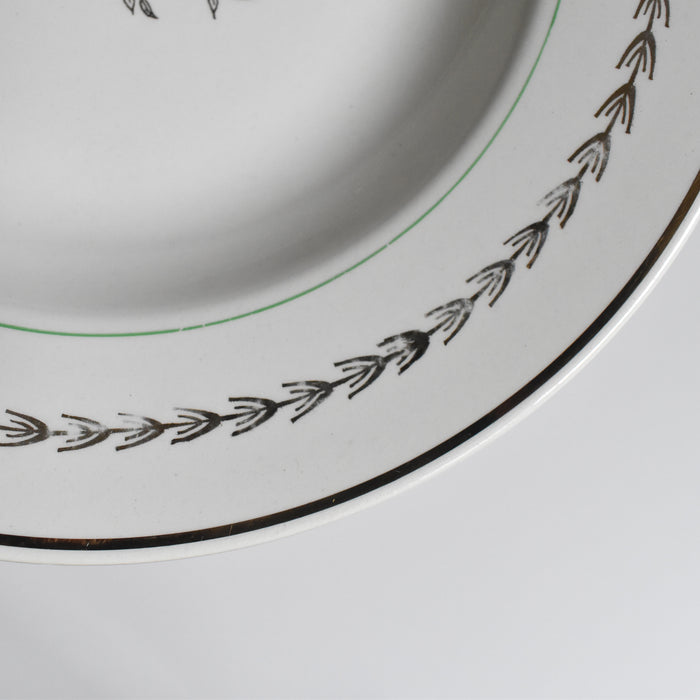 縁に金彩のガーランドと手描きの緑の線、見込み部分には金彩のを花が描かれています。洗練された優美なデザインのシリーズです。