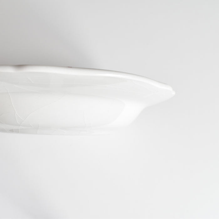プレートの縁を飾る、優雅な花リム(スカラップ状の縁取り)が、さらにその可憐さを引き立てています。