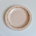 優しいピンク色と、シンプルなフォルムが調和するプレート。レリーフはストライプで空間を引き締めます。