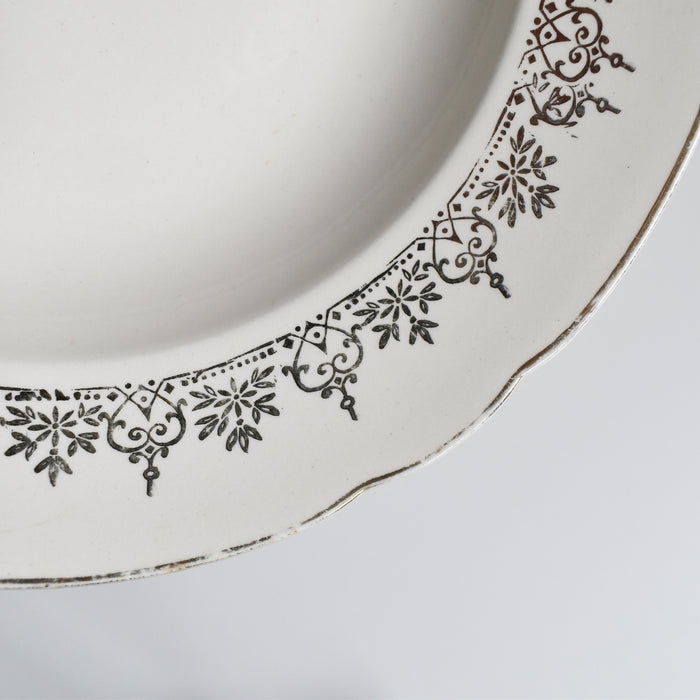 金彩で描かれた細やかで美しいガーランド模様。少しクリーム色がかったプレートとゴールドのコンビネーションが上品です。