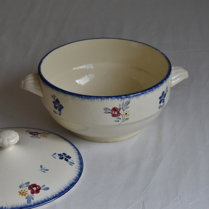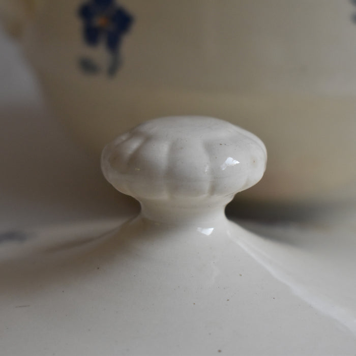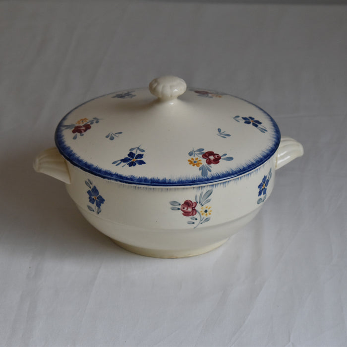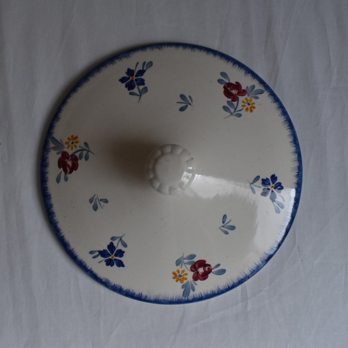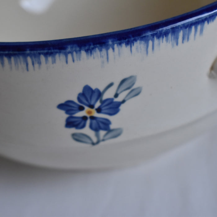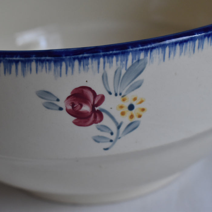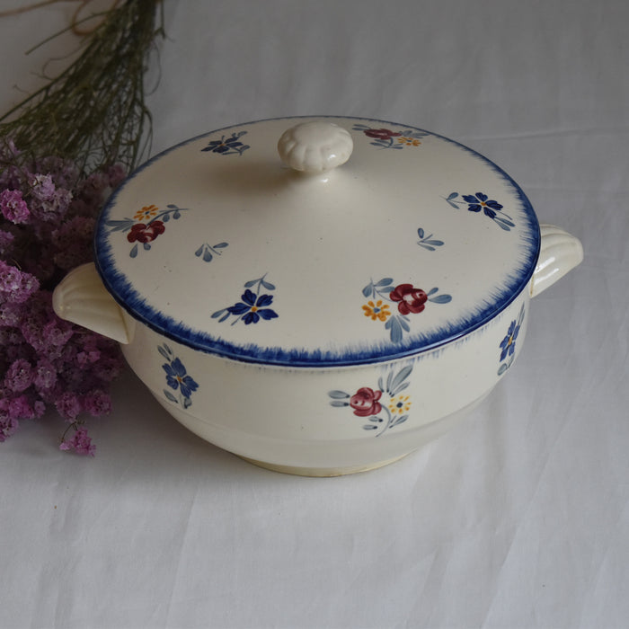 一つ一つ手描きされた花模様は、顔料の濃さや色の重なり具合が美しく手仕事の温もりを感じます。ころんとした花のフォルムも可愛らしく、可憐でカンパーニュな雰囲気に。