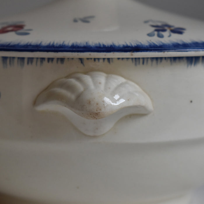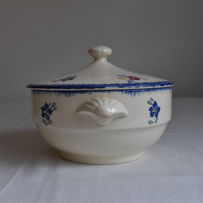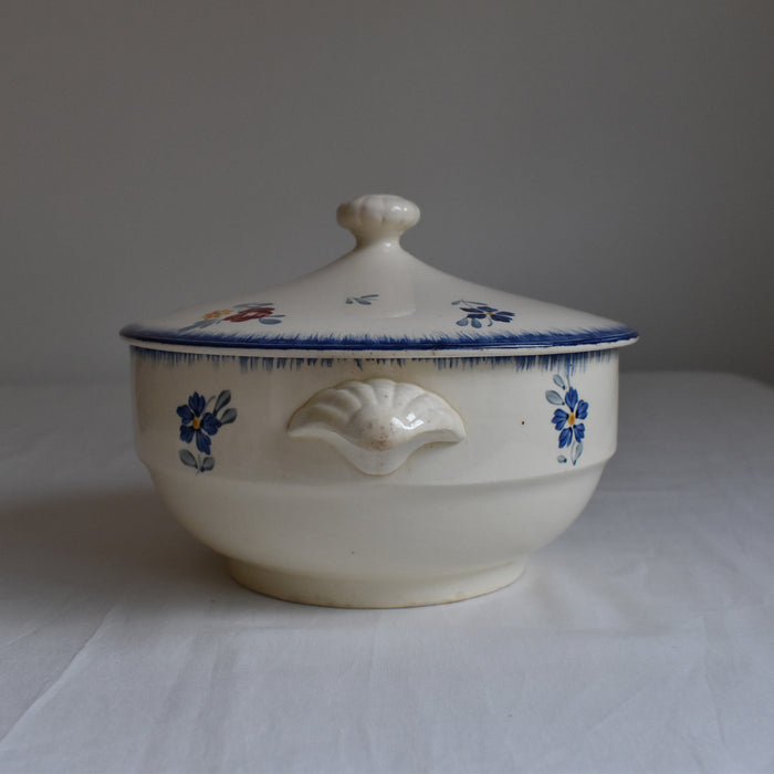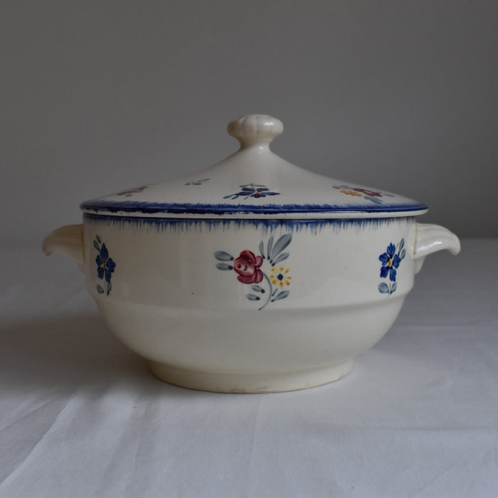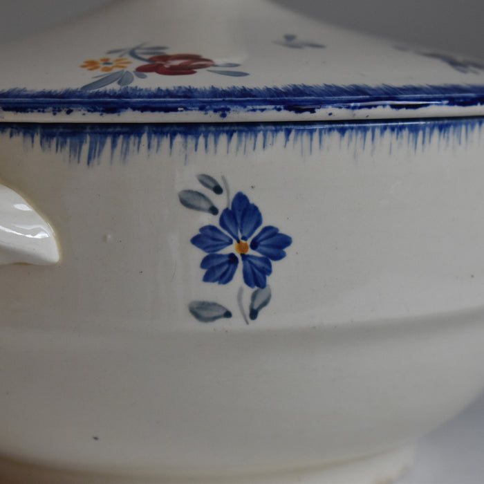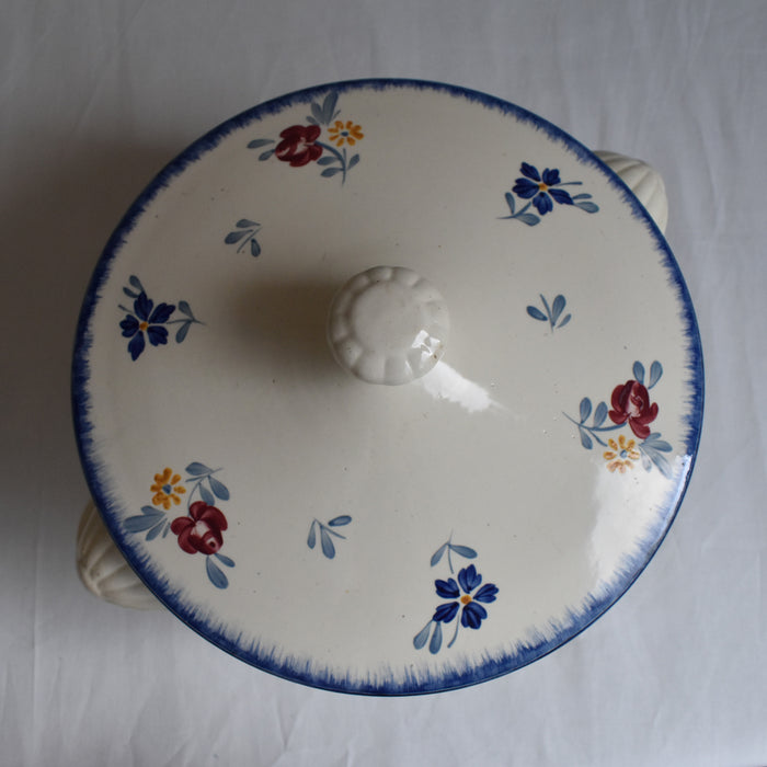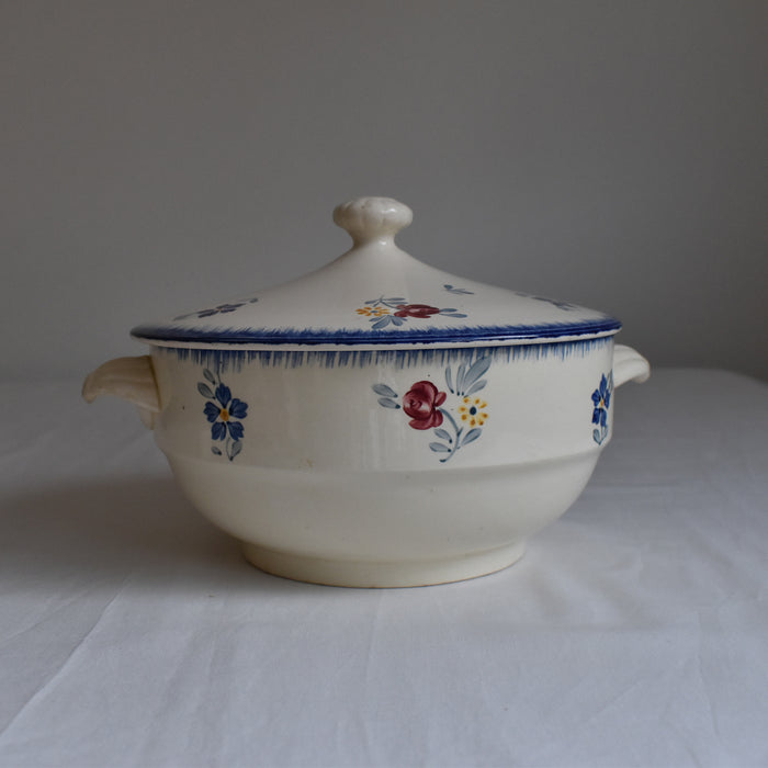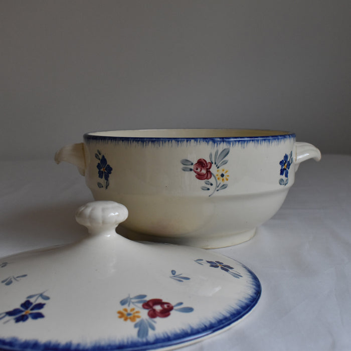 一つ一つ手描きされた花模様は、顔料の濃さや色の重なり具合が美しく手仕事の温もりを感じます。ころんとした花のフォルムも可愛らしく、可憐でカンパーニュな雰囲気に。