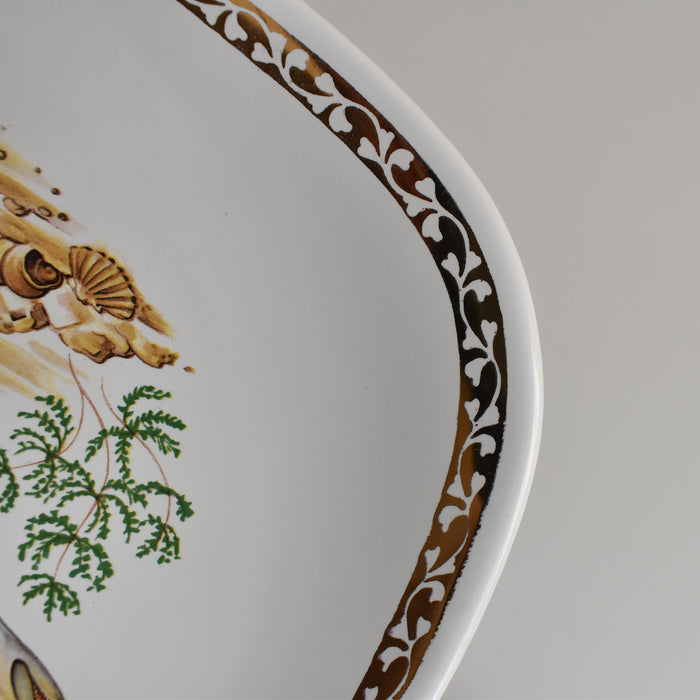 四角いプレートの縁には、水草や海藻柄の金彩が施され生き生きと描かれた魚を、美しく取り囲みます。
