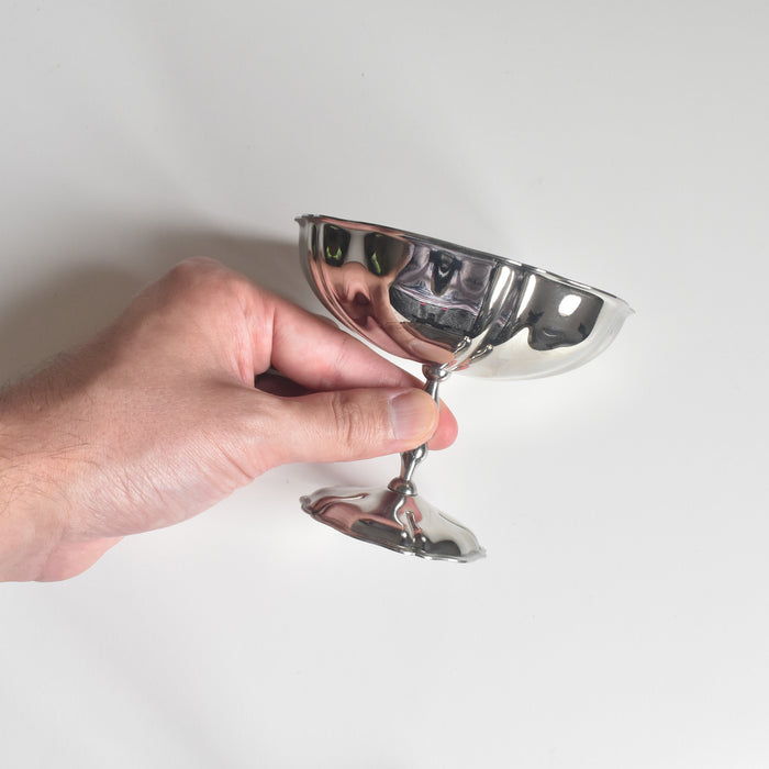 ヴィンテージ ステンレススチールのアイスクリームクープとスプーンセットです。