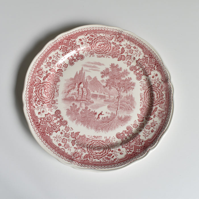 穏やかな花リムに、薔薇を中心とした花模様があしらわれた華やかで美しいプレート。